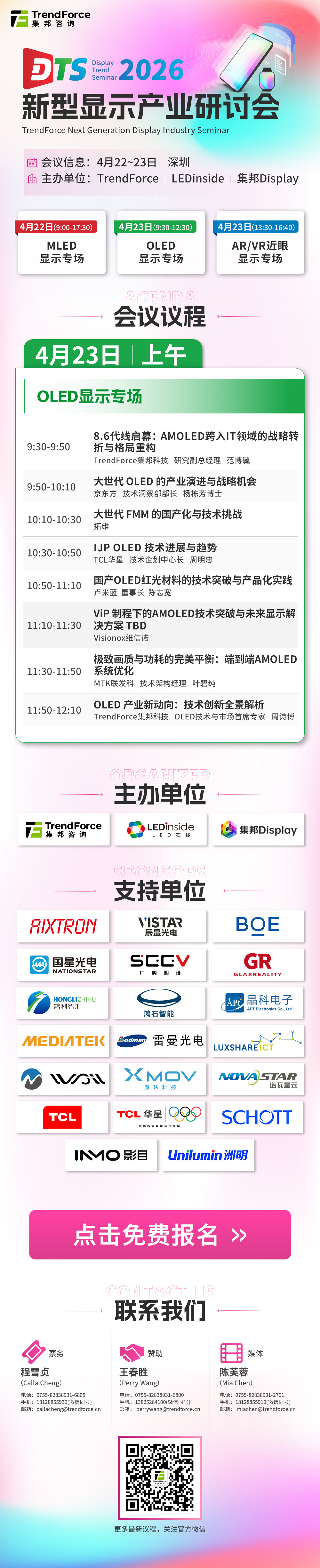 为深入解析OLED产业最新格局,TrendForce集邦咨询将于4月23日在深圳举办2026 DTS OLED产业高峰论坛。