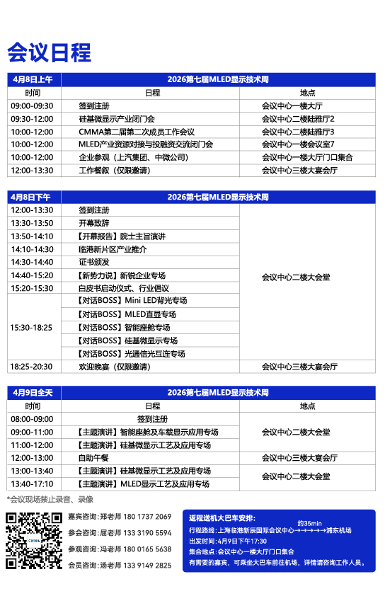 2026第七届MLED显示技术周暨人车家商业全场景生态大会将于2026年4月8-9日在上海临港新辰国际会议中心(上海临港凯悦酒店)举办,为保证您顺利参会,我们整理了详细的参会指南,建议收藏备用。