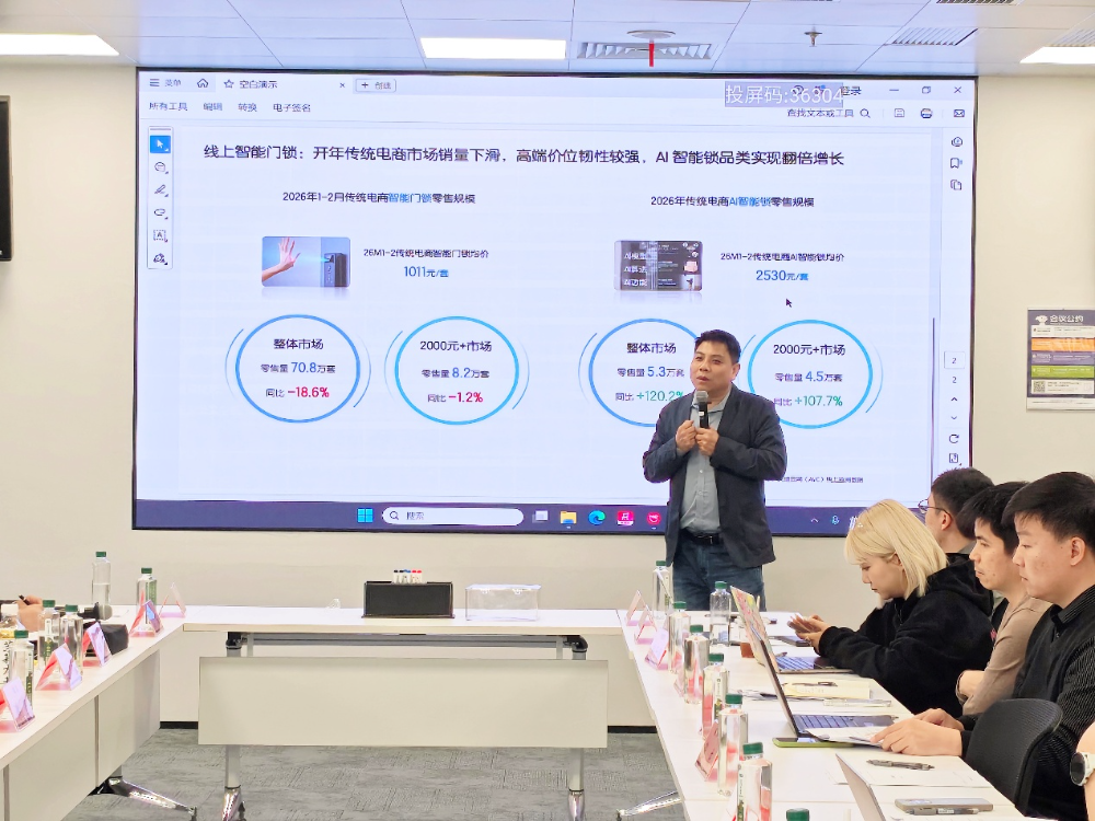 2026年4月3日,在人工智能技术从“概念爆发”走向“深度应用”的关键阶段,由中国五金制品协会指导,中国日用五金技术开发中心、全国五金制品标准化技术委员会日用五金分技术委员会、北京奥维云网大数据科技股份有限公司、京东、哔哩哔哩联合主办的《AI智能锁标准2.0》技术研讨会,于北京京东总部圆满召开。本次会议立足于此前已发布的《AI智能锁》团体标准,紧跟AI技术迭代与产业升级趋势,聚焦统一行业技术规范、补齐标准体系短板、强化产品质量与安全要求,旨在通过标准的全面升级,为AI智能锁行业确立新的技术准绳,引领产业向规范化、有序化、高质量方向迈进。作为对已有标准体系的重要补充与升级,本次研讨会汇聚了智能锁领域的领军企业与核心平台。京东零售家电家居事业群锁具五金组负责人朱家骏,中国日用五金技术开发中心主任吴庆、技术开发部部长石峰,中国五金制品协会制锁分会副秘书长李琢,奥维云网(AVC)总裁助理兼消费电子事业部总经理翁振华、研究总监王军,哔哩哔哩智能家居赛道负责人韩子溪等近30位行业专家及企业代表出席,会议由全国五金工业信息中心锁具行业研究员孙佳琪主持。京东零售家电家居事业群锁具五金组负责人朱家骏表示,AI智能锁标准2.0的制定是统一行业认知、推动新品与中高端产品市场转化的关键。京东将依托渠道优势,通过设立专区等方式,构建新品孵化与用户反馈闭环,为消费者提供清晰的选购锚点,全力赋能优质AI智能锁的推广与销售,共促行业长远发展。中国日用五金技术开发中心主任吴庆首先回顾了《AI智能锁标准》从无到有的搭建历程,对京东、奥维云网及各品牌方的协同推进表示感谢。他指出,首轮标准已完成行业概念界定与基础规范确立,当前需持续优化AI智能锁标准2.0体系,推动标准切实赋能产品升级与价值提升,兼顾产业发展与消费体验,让行业、企业与用户共享技术发展红利。奥维云网(AVC)总裁助理兼消费电子事业部总经理翁振华指出,在传统智能锁市场增长放缓的背景下,AI智能锁以120%的强劲增长成为行业破局关键。他强调,标准2.0的升级旨在结合大模型技术迭代,进一步净化市场环境,剔除伪AI产品。奥维云网将致力于推动标准与市场实况深度融合,确立高价值技术门槛,引领行业从价格内卷转向技术与体验驱动的高质量发展阶段。奥维云网(AVC)总裁助理兼消费电子事业部总经理翁振华会议期间,来自萤石、凯迪仕、鹿客、德施曼、TCL、华橙、涂鸦、威凯、优特电力、八爪鱼、小米等企业的代表参与讨论。各方代表围绕AI智能锁在“2.0时代”的技术边界、交互逻辑与安全规范进行深度对话。本次会议直面行业痛点,重点围绕“性能指标升级、功能拓展规范、安全隐私强化、检验规则优化、落地实施规划”五大核心议题展开技术攻关,力求在技术快速迭代的背景下,构建一套既具前瞻性又具落地性的标准体系。最后,中国日用五金技术开发中心技术开发部部长石峰进行了“辽宁省AI智能锁安装与运维评价权项目”的专项介绍。他表示,中国日用五金技术开发中心已获批辽宁省AI智能锁安装运维专项能力评价机构,未来期待各方携手共建合规有序的AI智能锁产业生态。本次会议的成功召开,标志着《AI智能锁标准2.0》的制定工作将有序进行。未来,随着2.0标准的逐步落地,AI智能锁行业将告别“概念混战”,迎来技术定义清晰、产品质量过硬的规范化发展新阶段,为构建智慧、安全的未来生活贡献核心力量。以下为奥维云网(AVC)推荐的2500元及以上的优质AI智能锁产品,兼具技术实力与品质表现,可为消费者选购提供权威参考。更多的智能门锁产品榜单与选购指南,将在奥维云网的文章中陆续发布,请持续关注后续内容。奥维云网原创文章,未经授权,禁止任何机构或个人抓取本文内容,用于训练AI大模型等用途。