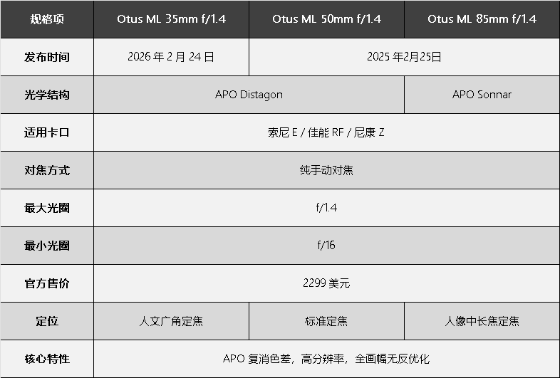 也就是说,蔡司摒弃了依靠数字校正来处理畸变、暗角等问题的方式,而这几乎是目前所有现代镜头厂商都在采用的方案。这款售价2299美元的全新Otus ML 35mm f/1.4,正是这种设计理念的完美体现。