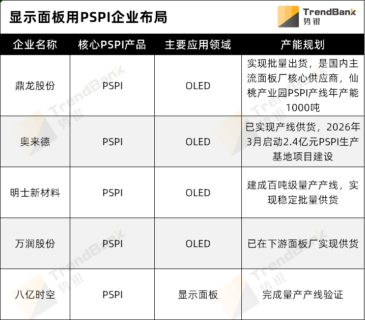 应用落地层面,国产PSPI已完成多场景渗透,显示领域京东方、TCL 华星已批量采用,半导体封装领域多家头部企业产品通过国内主流晶圆厂、封测厂认证并实现批量供货。