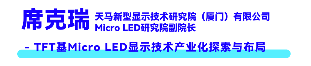 天马Micro LED研究院副院长席克瑞先生介绍了TFT基Micro LED,其具备>70%高透明、高亮度、无缝拼接等优势,有望与LCD、OLED三分天下。天马围绕产业化瓶颈,开发了低压补偿电路、高温蒸镀、激光转移分红(波长一致性达95%)、原位修复及高精度拼接等关键技术,解决了均匀性、效率与良率问题。目前,中试线已实现工艺收敛,重点布局车载高亮HUD、透明显示及拼接大屏,预计2026-2027年推进量产,并携手产业链实现自主可控。
