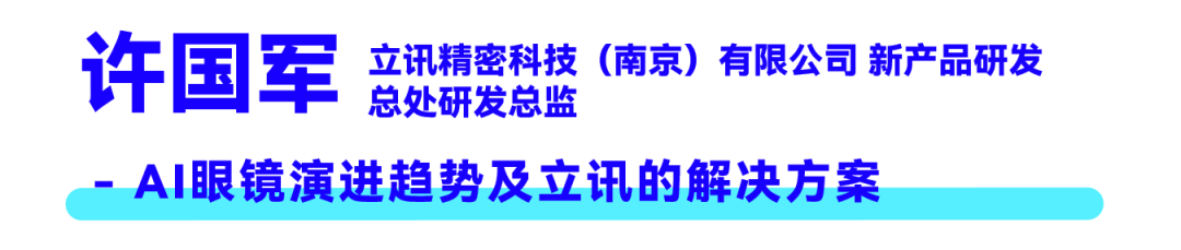 立讯精密新产品研发总处研发总监许国军先生认为AI眼镜正从L3自动执行阶段向全天候智能助理演进,Meta目前领先,但中国厂商持续发力。当前AI+AR眼镜面临轻量化、长续航、高性能的“不可能三角”痛点,佩戴舒适性、交互手段、隐私保护仍需突破。他预判:纯音频眼镜为大众基础款,AI+Camera为消费主力,AI+AR是终极方向。立讯精密已构建端到端一站式ODM方案,覆盖从配件到全彩AR眼镜的完整产品线,并推出基于Micro LED+SRG的全彩方案,整机重量控制在40克左右,助力产业量产落地。