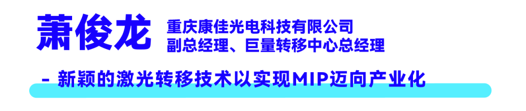 康佳光电副总经理、巨量转移中心总经理萧俊龙先生提到,MIP技术通过将多颗Micro LED封装成单颗灯珠,突破了传统Mini LED吸嘴极限(P0.7以下),可下探至P0.4间距。其产业化关键在于激光转移技术:利用激光实现剥离、巨量转移、分混波长及激光焊接,显著提升良率与效率。康佳已推出0404/0202 MIP灯珠,并通过双85可靠性验证。未来MIP将向集成Micro IC的主动式驱动演进,从PCB转向TFT基板,激光转移技术是MIP规模量产的核心引擎。