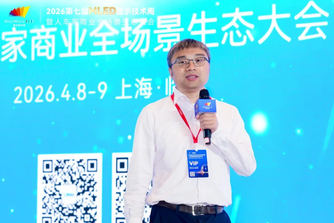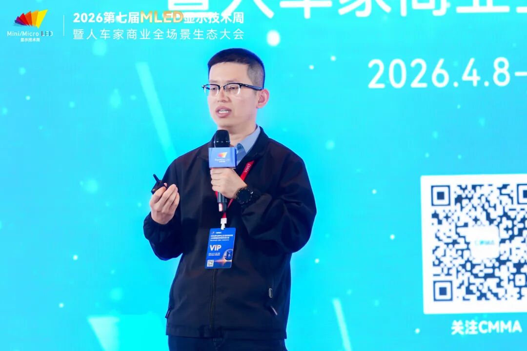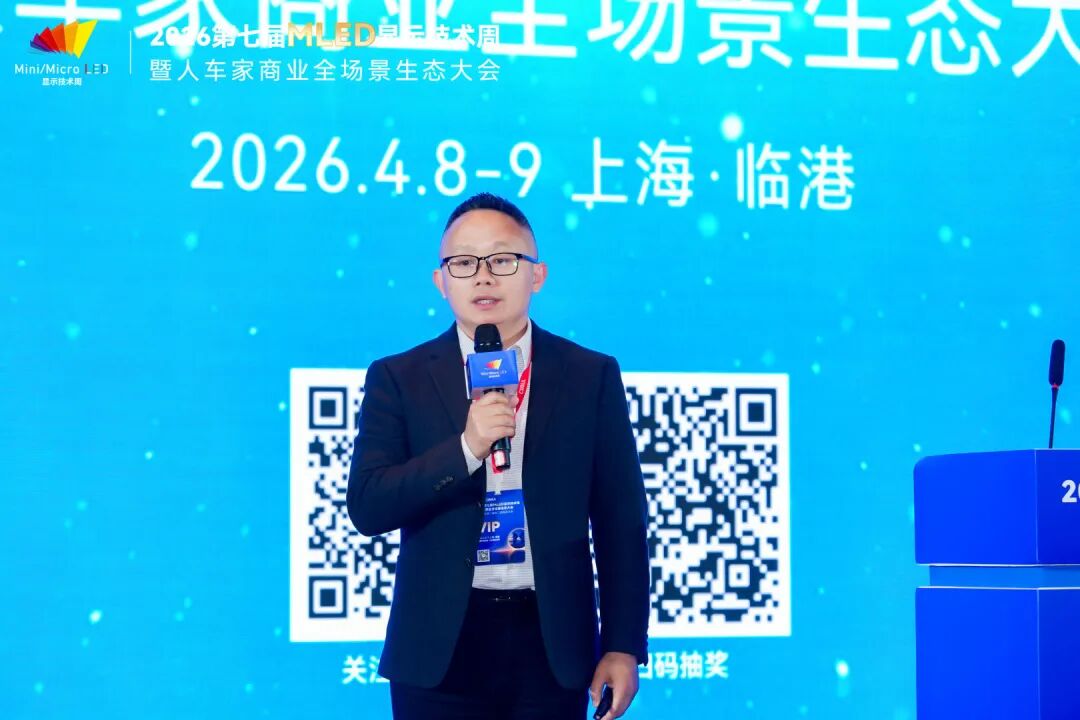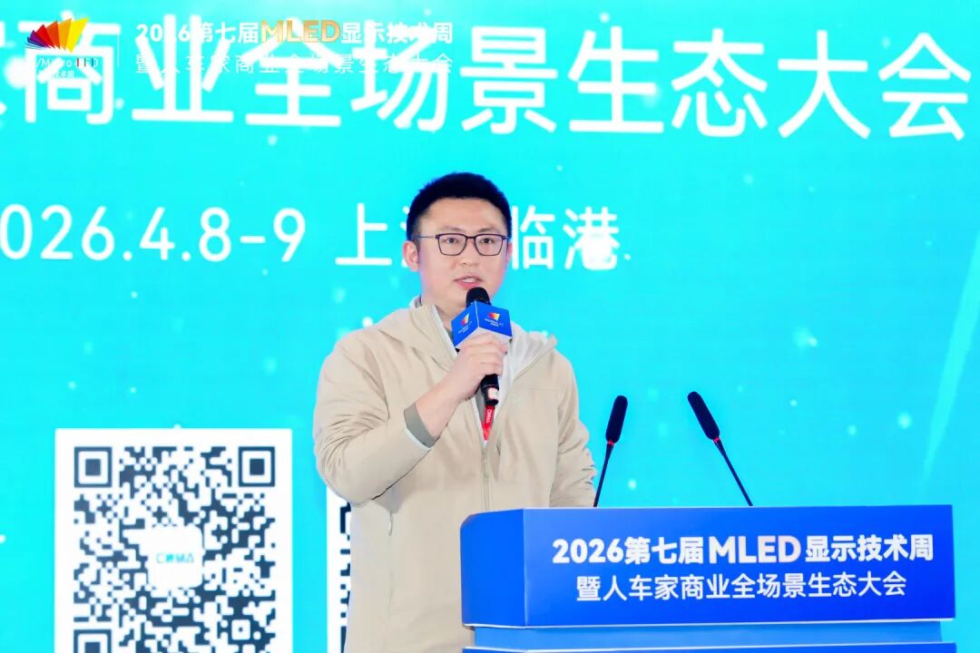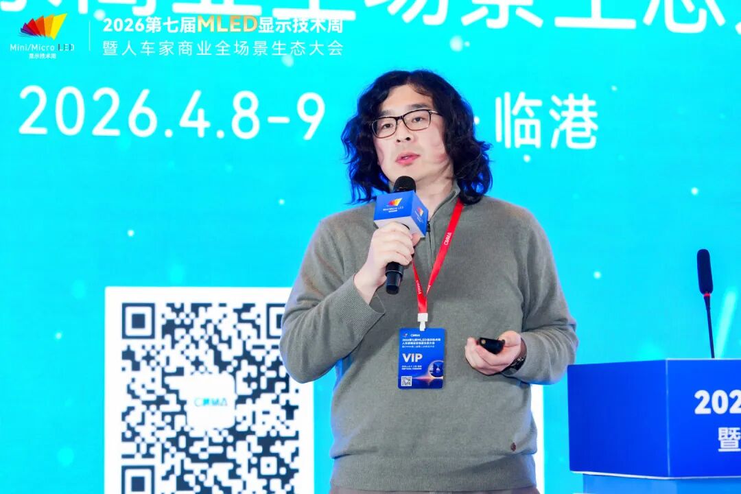 4月9日,2026第七届全球MLED显示技术周进入第二天。大会围绕智能座舱及车载显示、硅基微显示工艺及应用、MLED直显及工艺应用三大主题,继续上演高密度、高质量的技术及产业市场分享。来自上汽大众、天马、利亚德、TCL、海信、京东方、海微科技、歌尔光学、中微公司、瑞丰光电、康佳光电、立讯精密、芯视元、诺瓦星云、慕德微纳、盟拓智能、宏泰微电子、点莘技术、S&P Gobal Mobility、新辰投资等产业链龙头及标杆企业的嘉宾带来了20余场主题演讲,从车载显示、硅基微显示到MLED直显工艺,全方位解析2026年MLED产业的技术突破与量产实践。