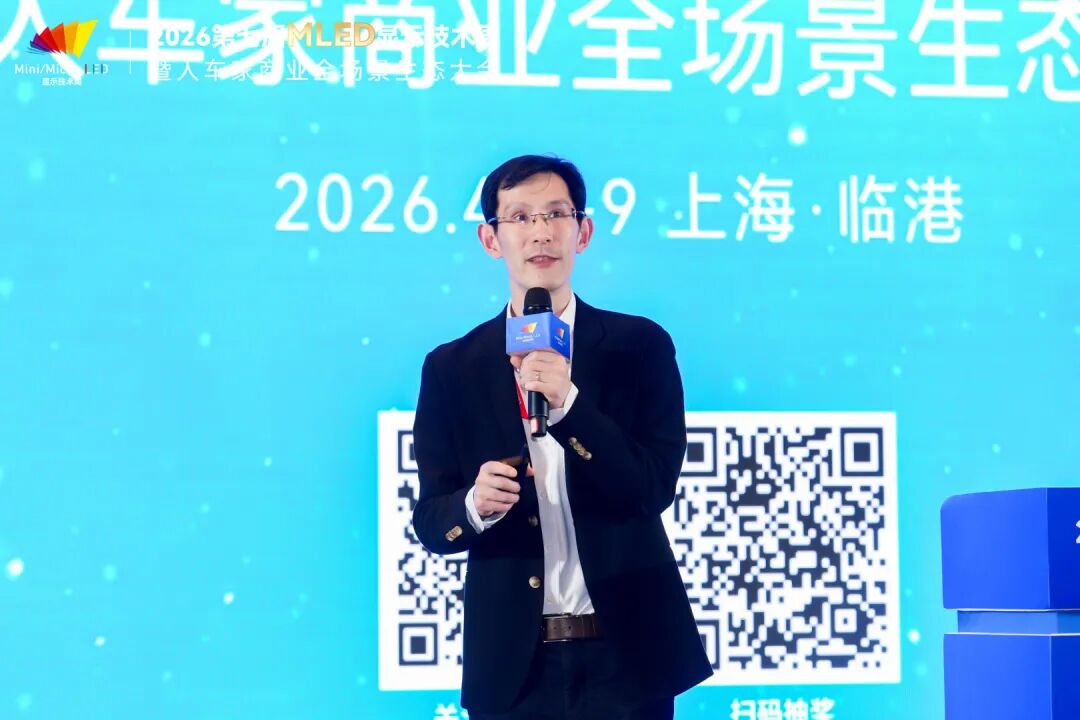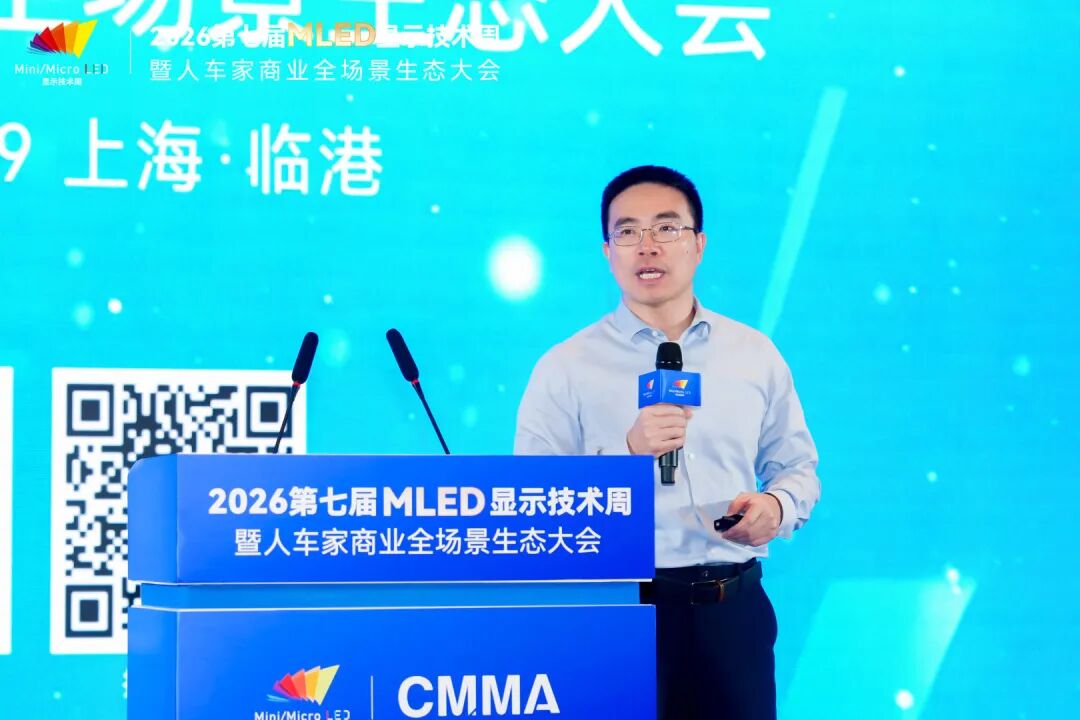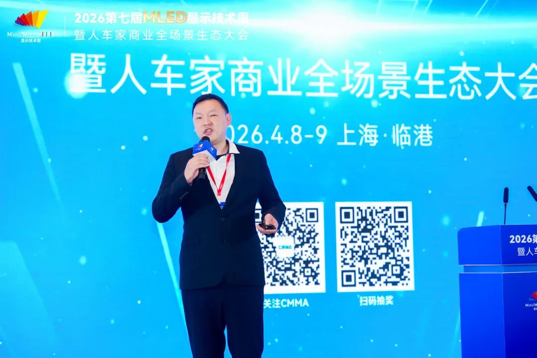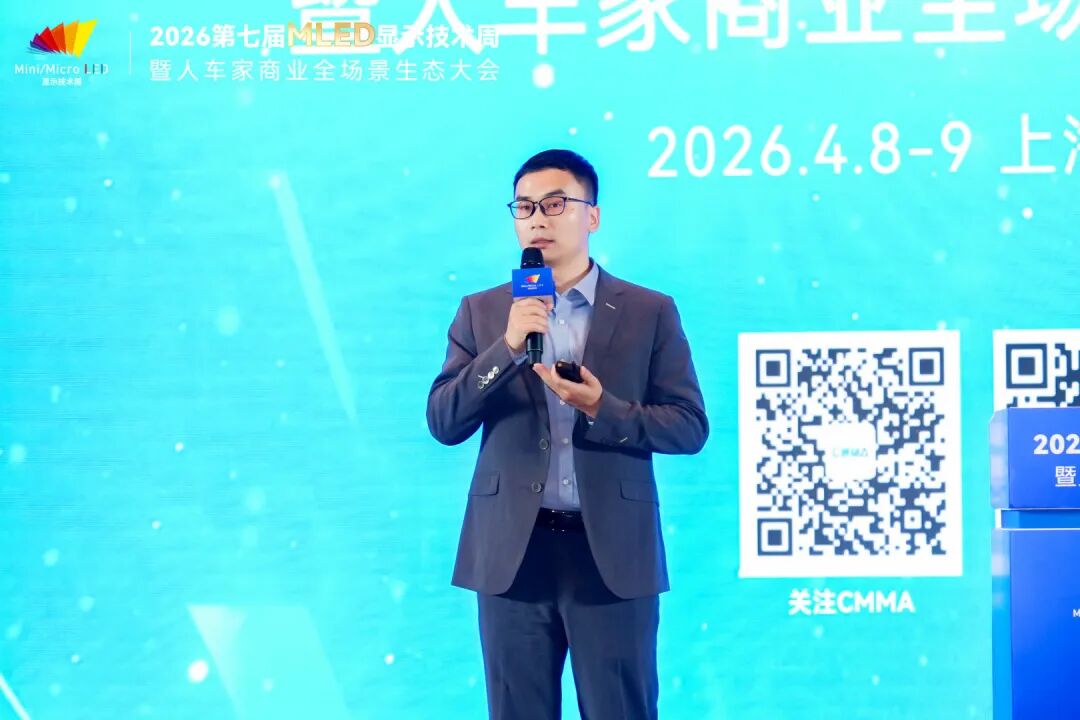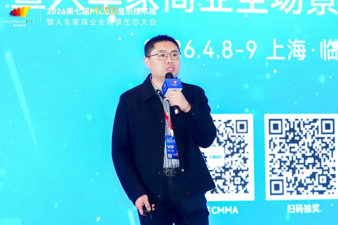 4月9日,2026第七届全球MLED显示技术周进入第二天。大会围绕智能座舱及车载显示、硅基微显示工艺及应用、MLED直显及工艺应用三大主题,继续上演高密度、高质量的技术及产业市场分享。来自上汽大众、天马、利亚德、TCL、海信、京东方、海微科技、歌尔光学、中微公司、瑞丰光电、康佳光电、立讯精密、芯视元、诺瓦星云、慕德微纳、盟拓智能、宏泰微电子、点莘技术、S&P Gobal Mobility、新辰投资等产业链龙头及标杆企业的嘉宾带来了20余场主题演讲,从车载显示、硅基微显示到MLED直显工艺,全方位解析2026年MLED产业的技术突破与量产实践。