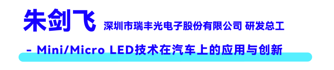 瑞丰光电研发总工朱剑飞先生讲到瑞丰光电正从提供LED灯珠转向以“光”为核心的完整解决方案,强调“光即场景、光即信息、光即体验”。Mini/Micro LED技术让光变得可设计,模糊了显示与照明的边界。公司推出了大功率矩阵大灯(ADB)、人因照明(模拟太阳光)、白光Mini LED背光(提升亮度与可靠性)、矩形光技术(光形可控),以及柔性像素化尾灯、字符显示等直显产品,并正研超万级像素大灯。最终理念是“灯无形光有形”,以光的艺术适配车载场景,打造极致体验。
