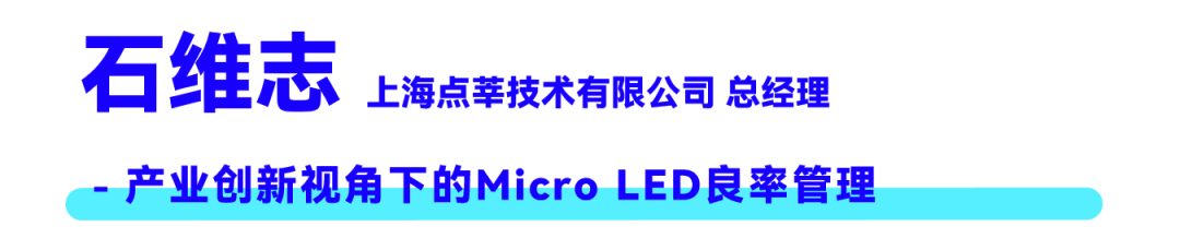 点莘技术总经理石维志先生提出了“芯片履历”的思想,他指出,Micro LED良率管理从单点检测转向全链路数字化制造,需要追溯每一个芯片从外延、巨量转移到键合的全流程数据,通过大数据分析精准定位失效根源,避免昂贵的返修。为此,点莘技术开发了亚微米级无基准位置量测、微凸点3D检测及柔性探针电测设备,但真正的挑战在于跨设备数据标准缺失与海量数据处理。他认为,Micro LED作为中国微纳制造首次正向研发的领域,设备材料企业必须走在应用前面,要通过数字化才能实现高良率量产。