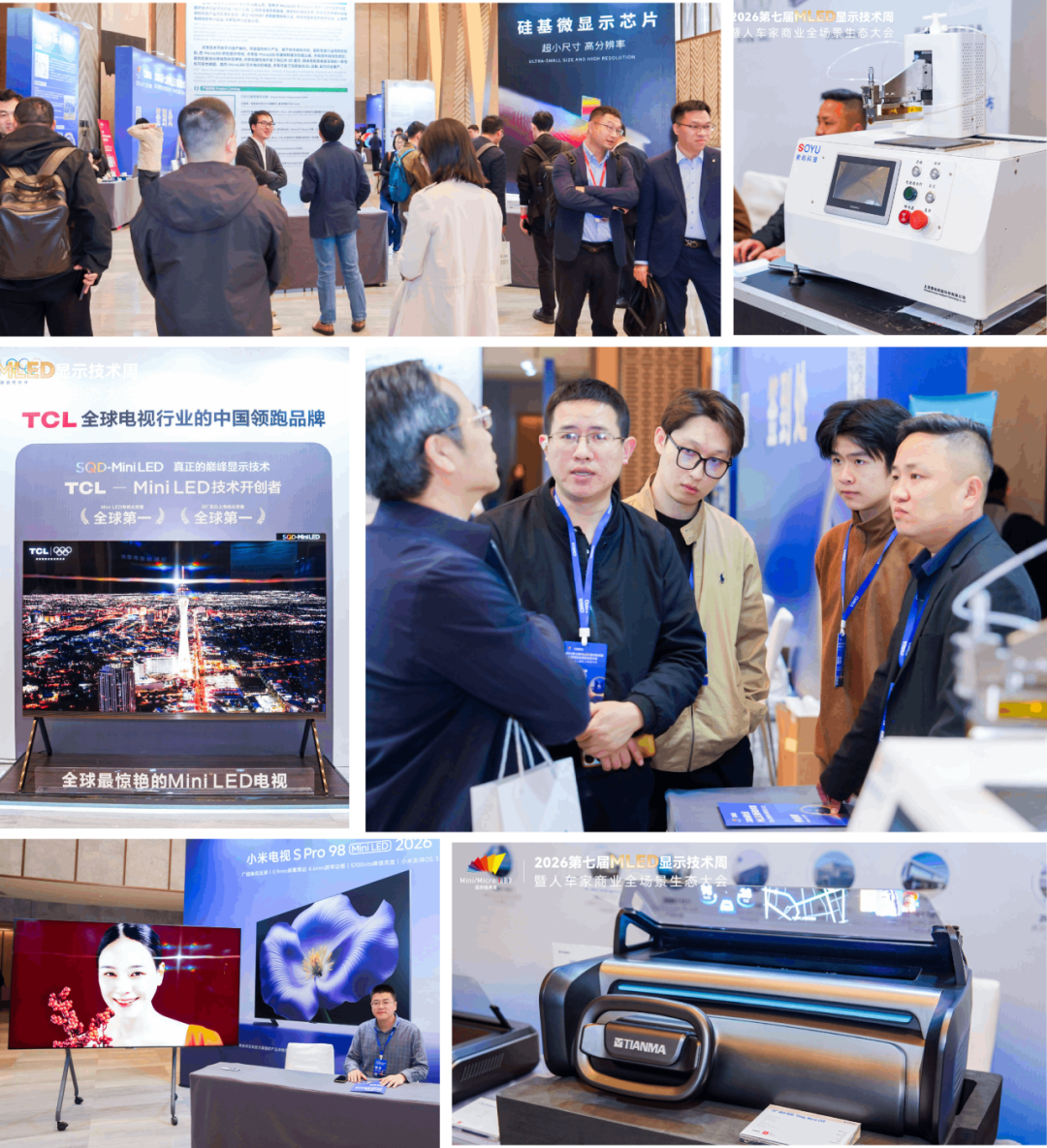 展示全面覆盖 材料/设备/芯片/模组/终端全产业链,集中展示了最新的 Mini LED 电视终端、Micro LED 车载显示、硅基 Micro LED AR 眼镜、透明显示、新型封装材料、国产化制造设备等前沿创新成果。参展企业与参会嘉宾围绕技术参数、量产痛点、市场需求、合作模式等方面进行了深入交流与对接,为 MLED 产业的技术转化与商业落地搭建了重要桥梁。