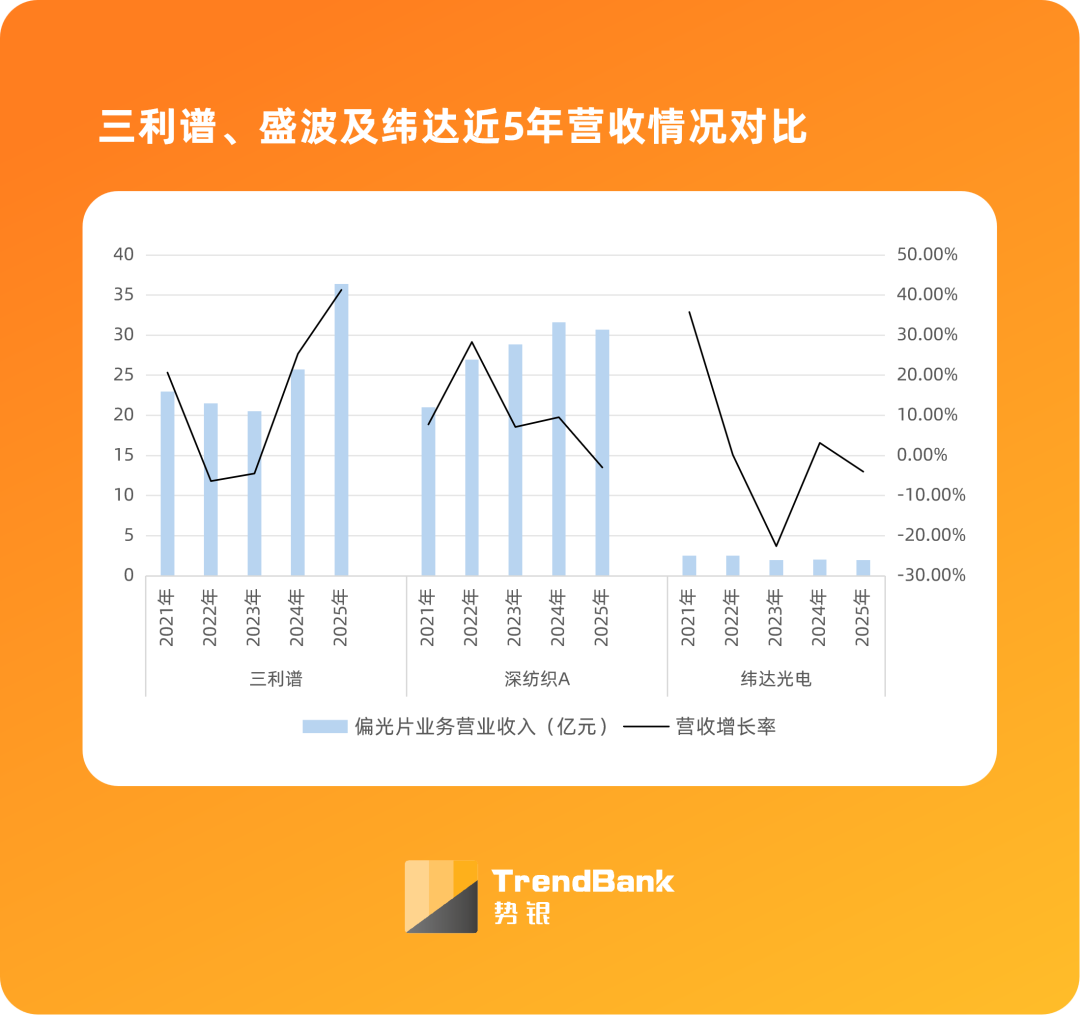 其中,盛波受益于超大尺寸电视需求增长,其2500mm超宽幅产线优势显著;纬达光电依托工控仪表、车载显示等细分市场的深耕,高耐久染料系偏光片产品销量稳步提升;三利谱则凭借合肥、莆田等多地产能扩张,抓住大尺寸面板国产化配套机遇,实现了规模放量。