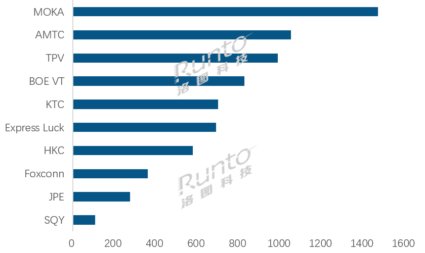 今年1月,Top10的尾部工厂Innolux(群创)仅出货4.5万台,2月出货更是跌至1.5万台。基于现状和趋势判断,洛图科技(RUNTO)从今年起,在该报告所涉及的统计池中剔除Innolux(群创)、新纳入SQY(启悦)。