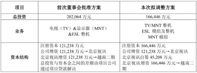 京东方越南二期整机项目调整,涉及投资总额、业务范围等