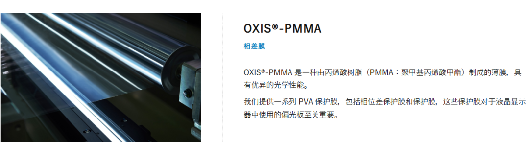同时,大仓工业拥有包括制膜、延伸、涂布、表面处理、贴合等全流程工艺,所生产的PMMA光学膜产品(如OXIS-PMMA系列)在光学性能、耐久性、表面处理、成膜厚度等方面具有优势,能满足不同显示技术对偏光片保护膜和相位差膜的需求。所以京东方选择大仓可以说是“强强联合”。