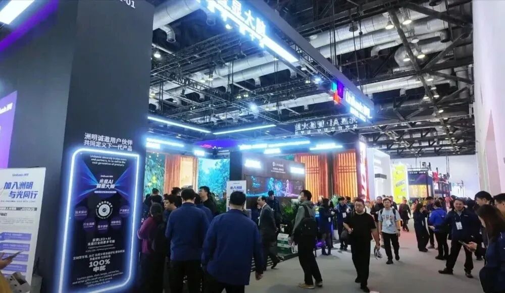 4月15-17日,北京InfoComm China 2026亚太专业视听及集成体验技术展在北京国家会议中心举行。利亚德、洲明科技、艾比森、辰显光电、诺瓦星云、卡莱特等多家LED显示、控制系统企业参展。企业带来LED一体机、家庭影院、虚拟拍摄、透明显示及户外节能产品与解决方案,并展示了丰富“AI+显示”技术方案,继续推动LED显示技术向高端、智能、全场景应用等方向发展。利亚德推出TWH(Hi-Micro),满足高端会议室、应急指挥中心、智慧城市运营中枢、虚拟演播室、高端家庭巨幕影院场景需求。TWH(Hi-Micro)采用全倒装、无衬底Micro LED芯片,最短单边尺寸<30μm,发光层仅有约5微米,实现超150°超大色度视角无偏色、20000:1超高对比度的视觉效果,另外,产品还有120Hz的高换帧频率。另值得注意的是,TWH(Hi-Micro)还搭载了DPR双路并联冗余技术,采用独特的双路并联设计,使像素级可靠性得到显著提升,像素失效概率实现数量级下降,且每路LED仅承担50%驱动负载,显著降低电流密度与结温应力。散热方面,TWH(Hi-Micro)搭载利亚德自主研发的节能恒流驱动IC,在室温25℃环境下,500nit亮度连续点亮2小时后,屏幕表面温度≤38℃。此外,在AI显示方案领域,利亚德带来了实现光波导显示技术与AI大模型技术突破的AR智能眼镜、面向粉丝与二次元用户的随身AI情感伙伴AI吧唧、自研AI大模型构建的AI球形屏互动方案、17.3 英寸Micro LED透明屏等产品。在室内显示领域,利亚德展示了幻镜艺术屏,采用天然原料与高分子聚合物复合表面工艺,可与装饰材料自然融合。产品符合建材级安全标准,具备A级防火、抗撞击等性能,具有纹理涵盖花岗岩、洞石等多种石材效果,支持P1.2–P3.9点间距显示。在户外显示场景中,利亚德展示了多个产品系列。LA-2系列主打高效节能与可靠性能,具有10000nits高亮度与10000Hz高刷新率;NSO系列专为户外严苛环境打造,具有10000nits超高亮度与10000Hz高刷新率,底壳可灵活选用矿钢或铝合金材质,产品达到IP66防水等级;MOK系列是一款面向户外广告场景的Micro LED云智能GOB显示屏,融合了云智能管理系统,并内置AI智能体;MGS系列则定位于户外小间距市场,支持前维护后安装与全前维护两种方式,既方便部署也大幅降低客户的使用门槛。同时系统拥有良好的散热性能,支持按需选配电源备份、双卡双环路备份,为不同场景提供灵活可靠的保障。在InfoComm 2026展会上,洲明科技以让“大屏会思考、能干活”为主题,深度展示了LED与AI融合的最新成果。展会核心亮点在于将显示屏从单纯的信息载体升级为具备感知与交互能力的智显终端,通过LED+AI深度赋能千行百业。展台形象墙采用U-Natural纹理屏搭建而成,凭借纳米光学纹理技术,U-Natural纹理屏在熄屏时呈现拟真的原木质感,亮屏时则是超清视效,实现了高端装材与显示的完美融合。展位主屏区上,洲明科技展出了旗舰级UMini W系列,产品简化了系统架构,不再需要外部发送盒,仅需一根HDMI线即可实现即插即显与自动连屏。洲明科技还全球首发了音视频智能体平台,依托智脑Zbrain底座赋予屏幕空间感知与主动服务能力。AI指挥中心解决方案则通过数字人助理与语音驱动,实现了灯光、音响等物理设备的跨设备联动。针对教育场景,洲明科技现场展示了135英寸UTV SC一体机,该设备内建AI教育讲解系统,支持苏格拉底式引导教学,能完成从课前写教案到课后学情分析的全流程辅助工作。洲明科技还在现场展示了LED+AI如何赋能千行百业,如安全信发方案实现了内容审核与发布的闭环管理;光显体育方案实时呈现比赛数据与战术分析;XR数字影棚结合九转棱镜技术可实现虚拟背景秒级切换等。此外,展会上,洲明还展出了两款重磅硬件:UTV SCX瓷砖屏作为行业最轻薄COB瓷砖屏,支持模组磁吸上墙,安装极其简便;Udesign SV Pro全息屏则采用AM+MiP灯驱合一技术,打造出震撼的三维悬浮视觉奇观。艾比森COB两款产品亮相,分别为CL Pro V3和KLCOB V2。CL Pro V3系列是一款采用Micro MiP封装技术的微间距LED显示产品,使用34×58μm超微芯片以提升黑占比与对比度表现。产品支持高灰阶与高刷新率,以改善画面平滑度与显示稳定性。同时具备低功耗、较高可靠性及前维护结构设计,适用于室内专业显示场景。KLCOB V2系列使用全倒装封装与共阴驱动设计,以降低功耗并改善散热。在显示性能上,主要通过提升对比度与墨色一致性来优化画面表现。产品具备防尘、防潮、防静电等设计,用于提升在会议室、控制中心及广电等场景中的稳定运行能力。值得注意的是,除了展会上的产品外,在近期,艾比森举行了2026春季发布会,正式公布2026 ProAV产品路线图,完成KLCOB V2、NX、X136 V2三大系列升级,并推出CL V3、K、AW Pro、ALT四大全新系列,构建起覆盖室内COB/SMD、创意显示、DOOH等多品类的全场景产品矩阵。辰显光电展出了多款全球首创产品,涵盖大模组、大尺寸、透明显示等多个领域。其中,全球首款270英寸8K TFT基Micro-LED显示屏,像素间距0.7mm,超3300万像素,AM驱动结合自发光特性,呈现深黑与超高对比度,适用于专业影院、指挥调度中心等场景。全球首款135英寸P0.7 TFT基Micro-LED大模组显示屏,单模组更大,拼装效率提升一倍;采用PWM&PAM混合驱动及低黑减反膜,实现20000:1对比度与纯黑表面,满足高端商业视觉要求。全球首款19英寸P0.4 TFT基Micro-LED透明屏,支持无缝拼接与超高通透度;产品同时支持触控、隔空手势与人体感应,开启人机