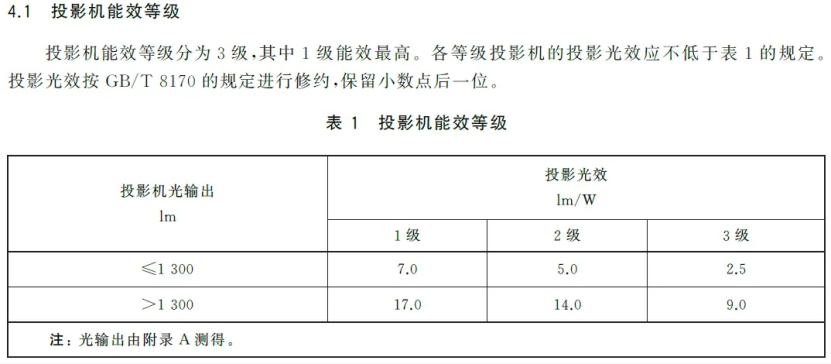 附2:投影机能效等级(国标2025版本)
