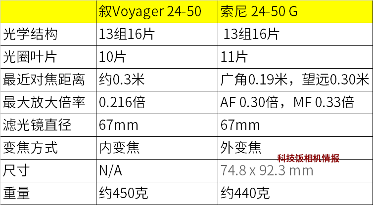 首款国产变焦AF全画幅镜头叙(Thypoch) AF Voyager 24-50mm F2.8更多信息曝光,该镜头重约450克,和索尼FE 24-50mm F2.8 G(约440克)差不多,不过叙Voyager是内变焦设计,而索尼G是外变焦设计。