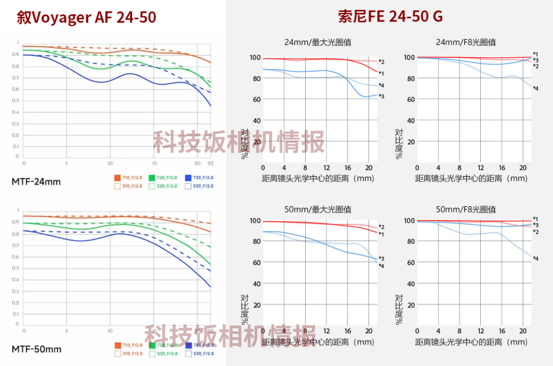 叙 AF Voyager 24-50mm F2.8与索尼FE 24-50mm F2.8 G MTF图对比: