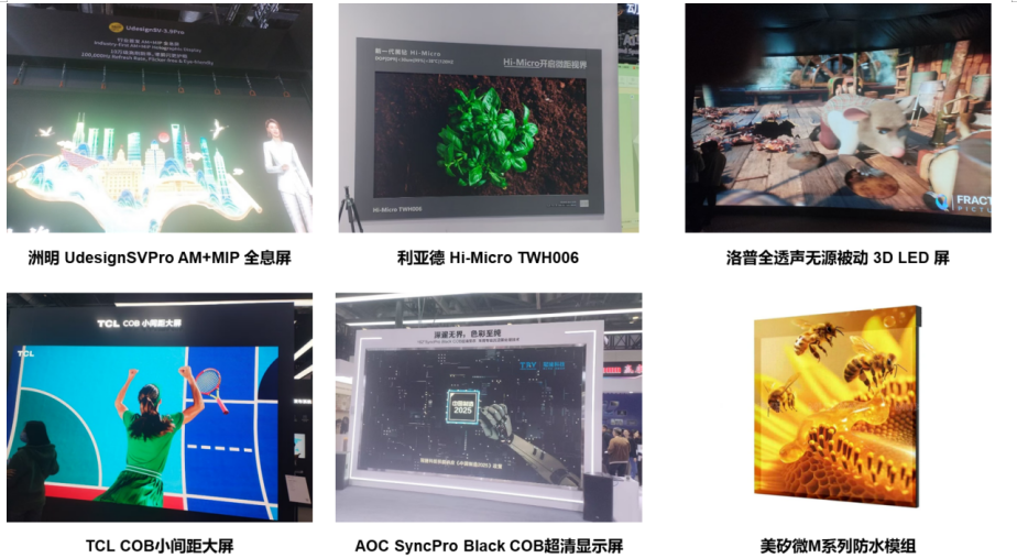 室内小间距显示屏依旧是商显市场主流品类。本届展会现场,MIP、COB 两大技术成为各大展商集中发力、重点展示的核心发展方向。当前多数 LED 头部显示品牌均采取双线布局策略,同步推进 MIP 与 COB 技术研发及产品落地,完善高端显示产品矩阵。