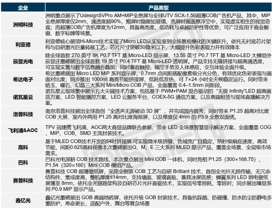 一、本届展会新品:头部品牌新品集中发布,LED 显示加速迈向高清化、创意化、轻薄化
