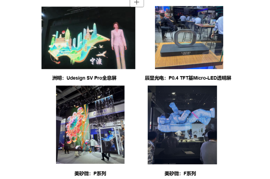 一是显示技术迭代加速,小间距与MiniLED 加速标准化,MicroLED 从百亿级大型项目向中型场景渗透,COB 技术持续进阶,MiP逐步普及,透明屏、全息屏等新型显示形态成为商业显示标配,并在文旅、广告、零售领域实现大规模落地;