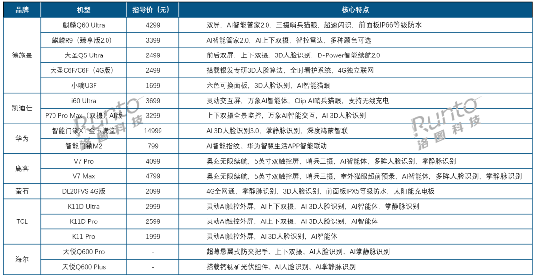 2026Q1 中国智能门锁市场重点品牌新品信息