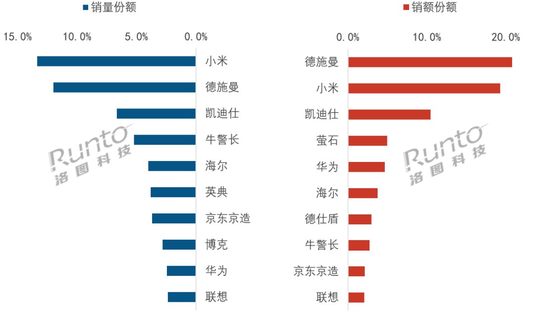 数据来源:洛图科技(RUNTO)线上全渠道数据,单位:%