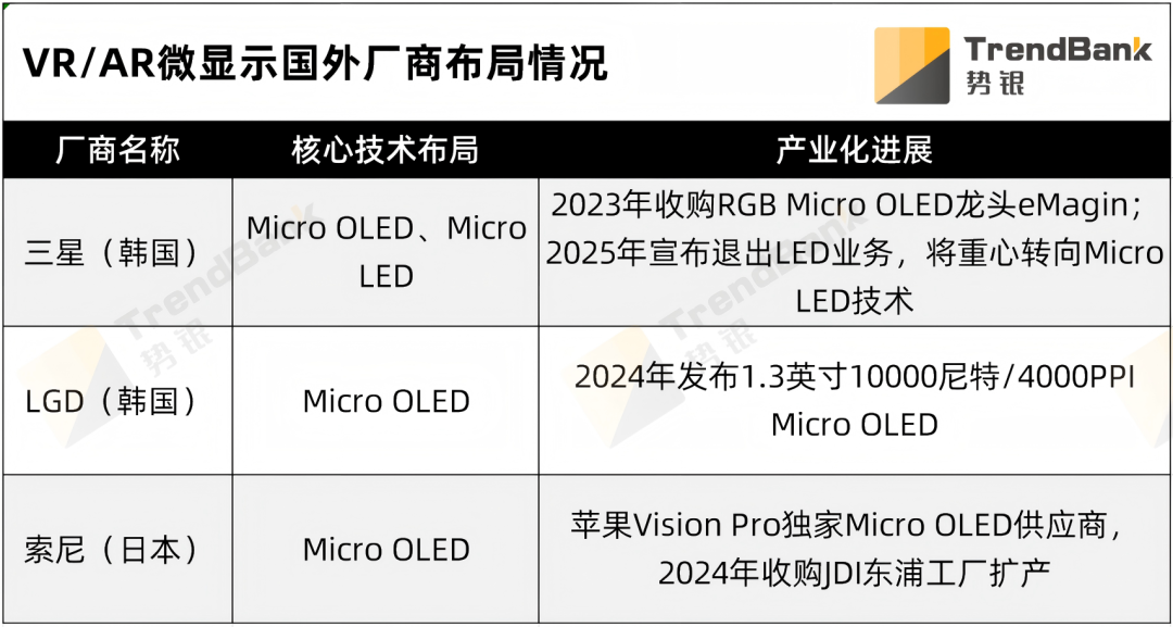 与此同时,以VR、AR为代表的新兴应用领域迅速崛起,对高分辨率、小尺寸、低功耗的近眼显示技术需求激增,叠加半导体产业的迅速发展,逐渐将微显示技术推向未来发展的前沿,形成增量市场。