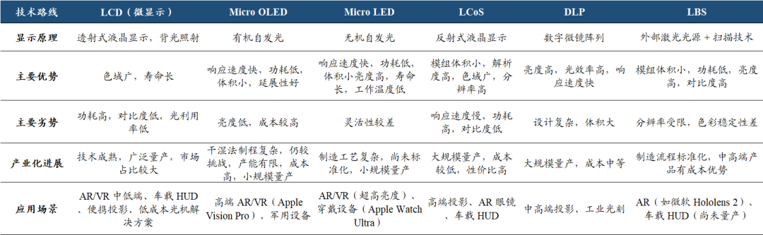 微显示技术的优劣势、产业化进展及应用场景 来源:国泰证券