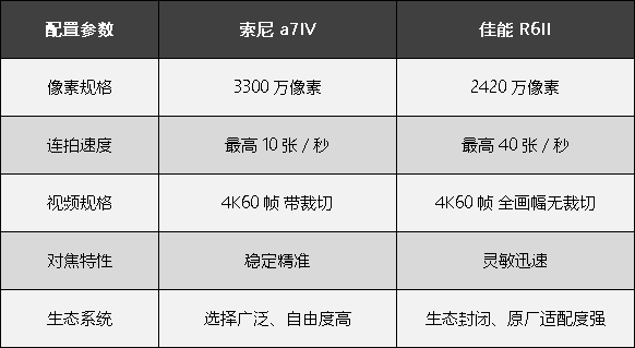 索尼 a7IV(左) ,佳能 EOS R6II(右)