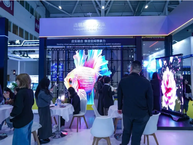 (七)透明屏:在数字化浪潮下,透明显示技术正逐渐成为商业空间的新宠。不同于传统LED屏幕,透明屏采用特殊设计,既能清晰展示内容,又能保持部分光线穿透,完美解决了展示与空间通透的矛盾。本次展会,谷亚G-ART展示了两款全新透明屏产品,满足不同用户的个性化需求。其中晶膜屏厚度仅3mm且可弯曲,透光率高达85%-90%,能够在不破坏装修的前提下实现“隐形”融入;而全息屏则拥有9000:1超高对比度和4000nits峰值亮度,画质通透锐利,同样采用3mm超薄机身并支持免钢结构,真正实现即贴即用,让空间显示更智能、更沉浸。