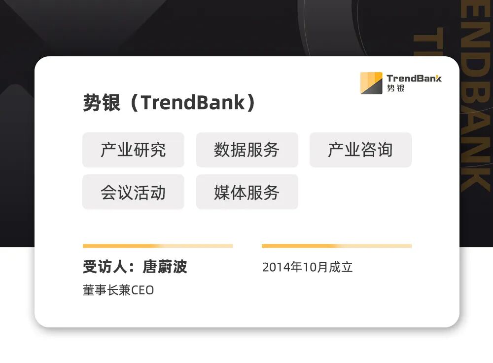 导语:专业服务(professional service),指包括对企业提供的投资银行、管理咨询、会计师服务、法律服务、科技服务、人力资源服务等等服务类型。在中国,有许多耳熟能详的专业服务公司,例如做投资银行的高盛,做管理咨询的麦肯锡,做会计师服务以及财务咨询的“四大”。势银(TrendBank)则是专业服务行业的一份子。与上面提到不同的是,势银属于产业研究与咨询公司。2015年正式运营的势银,快