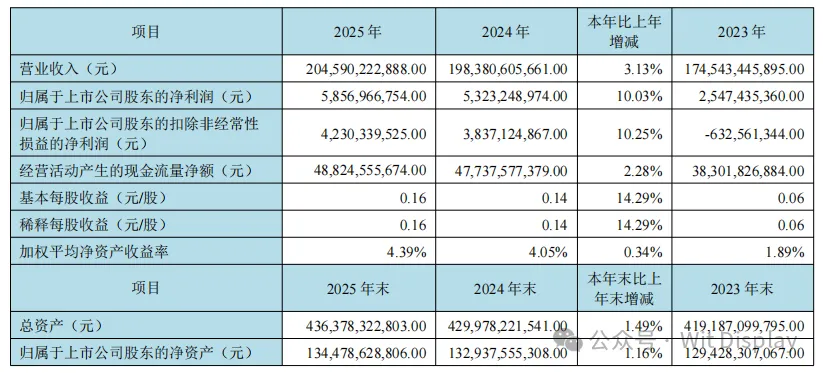 3月31日晚间,京东方A公告,2025年实现营业收入2045.9亿元,同比增长3.13%;归属于上市公司股东的净利润58.57亿元,同比增长10.03%。主营业务分析1. 显示器件领先地位持续巩固,产品技术全面强化,报告期内实现营收约 1,664.17 亿元,同比增长约 0.86%。 LCD 五大主流及车载应用面板出货量稳居全球第一,柔性 OLED 器件出货量保持增长。其中,高端 LCD 解决方案