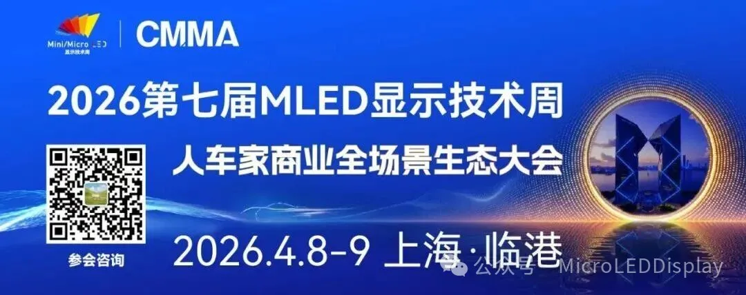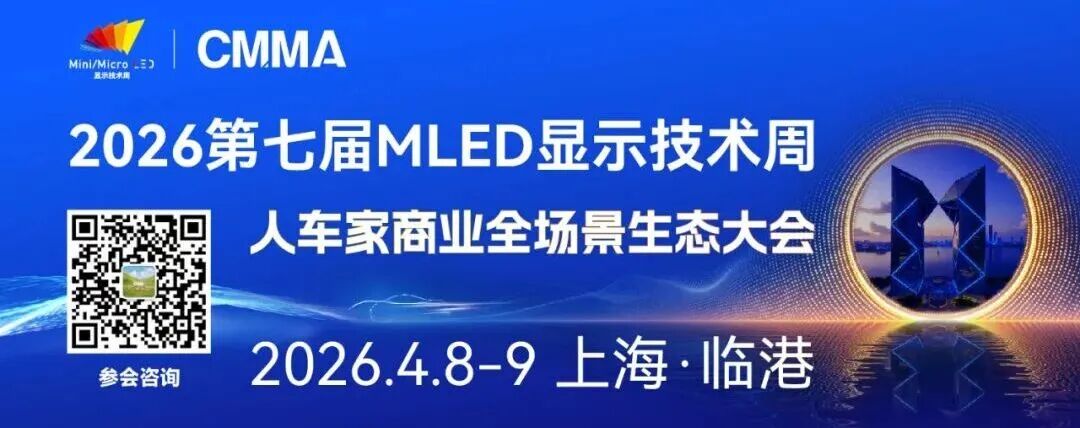 2026第七届MLED显示技术周暨人车家商业全场景生态大会将于2026年4月8-9日在上海临港举办,以“贯通产业全链,开启智显场景”为主题,汇聚产业链上下游最具代表性的核心力量,从闭门共识到高层对话,从技术演讲到趋势研判,搭建集政策解读、技术研讨、商业对接、生态共建于一体的产业级交流平台。本届大会涵盖3大闭门研讨会、5大对话BOSS专场、3大主题演讲板块、新势力说、企业参观等多元环节,完整覆盖Mi