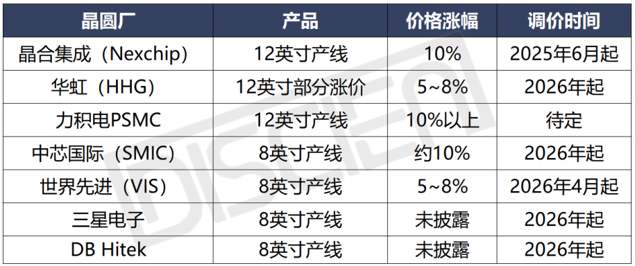 2026年3月12日,国内晶圆代工龙头晶合集成(Nexchip)正式向客户发出通知,宣布上调晶圆代工服务价格。而此前,中芯国际(SMIC)、世界先进(VIS)、华虹集团(HHG)、东部高科(DB Hitek)、三星电子等晶圆代工厂商已先后对8英寸成熟制程代工报价进行了不同幅度的上调。由AI需求爆发引起的半导体行业震荡,在经历存储芯片与功率器件轮番缺货涨价后,已然蔓延到显示驱动芯片(DDIC)领域。