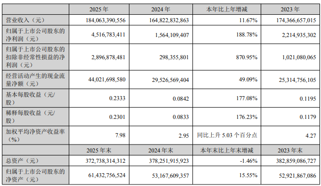 3月27日,TCL科技(000100.SZ)发布2025年度报告,年内公司营业收入1840.6亿元,同比增长11.7%;归属于上市公司股东净利润45.2亿元,同比增长188.8%;经营性现金流净额440.2亿元,同比增长49.1%。公司拟每十股分红0.9元,现金分红金额18.7亿元,分红比例超40%。报告期内,TCL华星实现高质量增长,盈利能力大幅提升,成公司核心增长引擎。2025年,其实现营业收