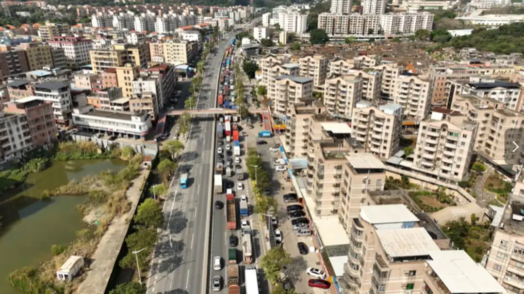 谁也没想到,中东大乱后,万里之外的中国东莞樟木头,货车竟然堵成了长龙。
