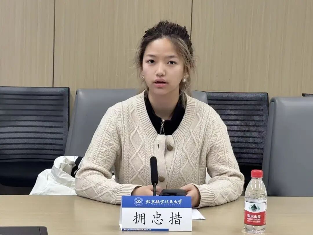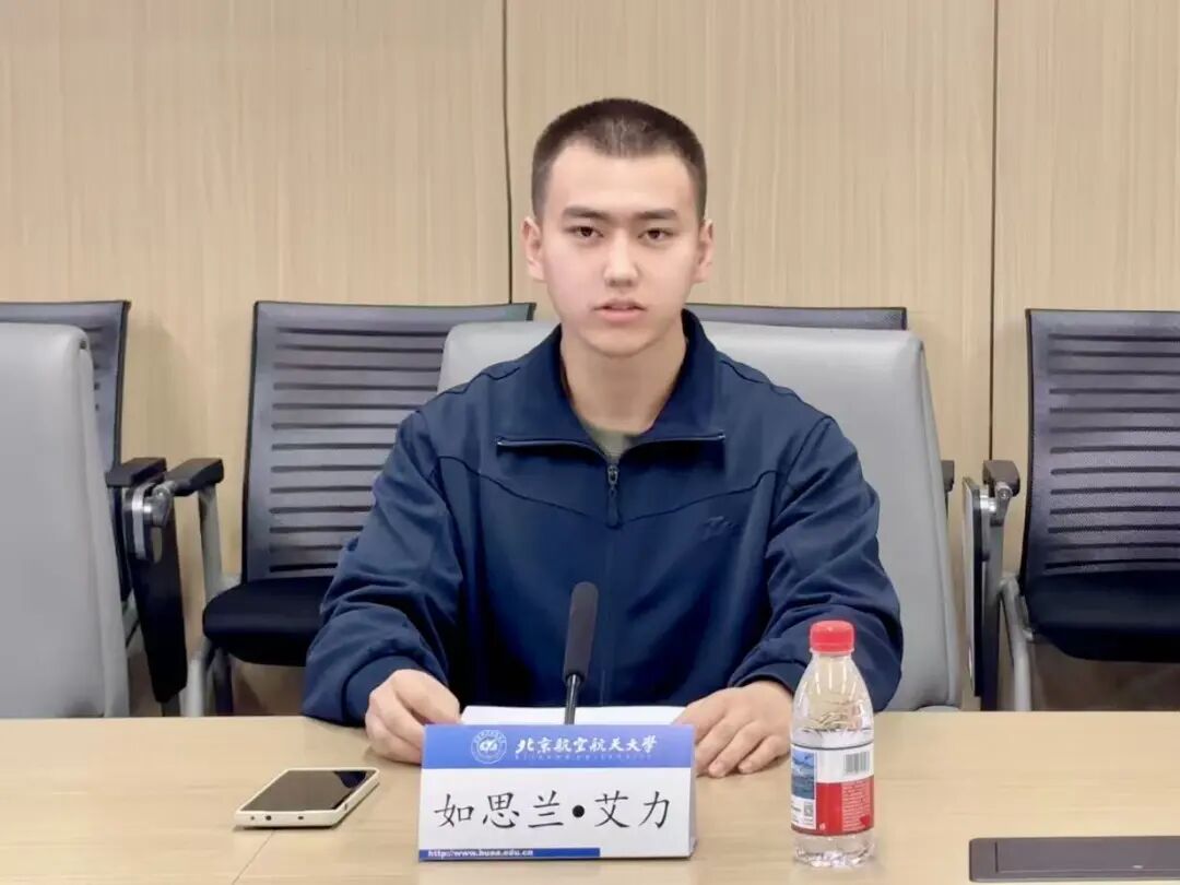 首先,符合应征入伍条件的2022级本科生拥忠措和2024级本科生如思兰·艾力分别发言。他们分享自己坚定入伍决心的心路历程,表示将立志践行北航青年奉献国防的使命担当。