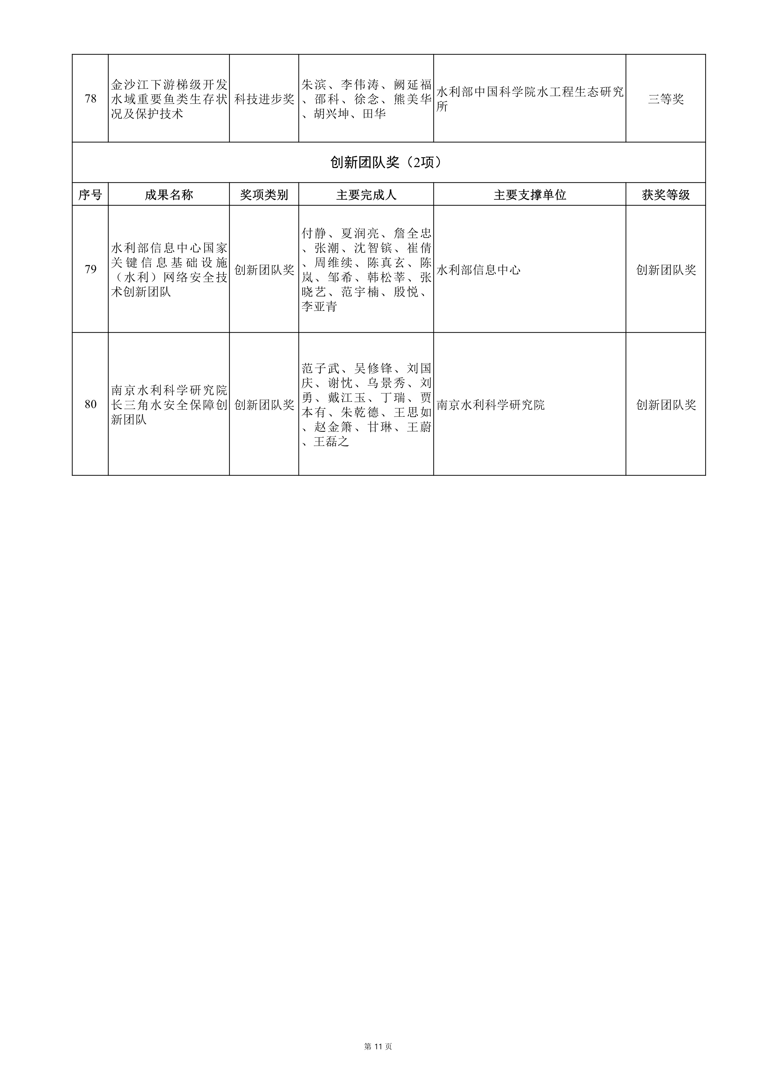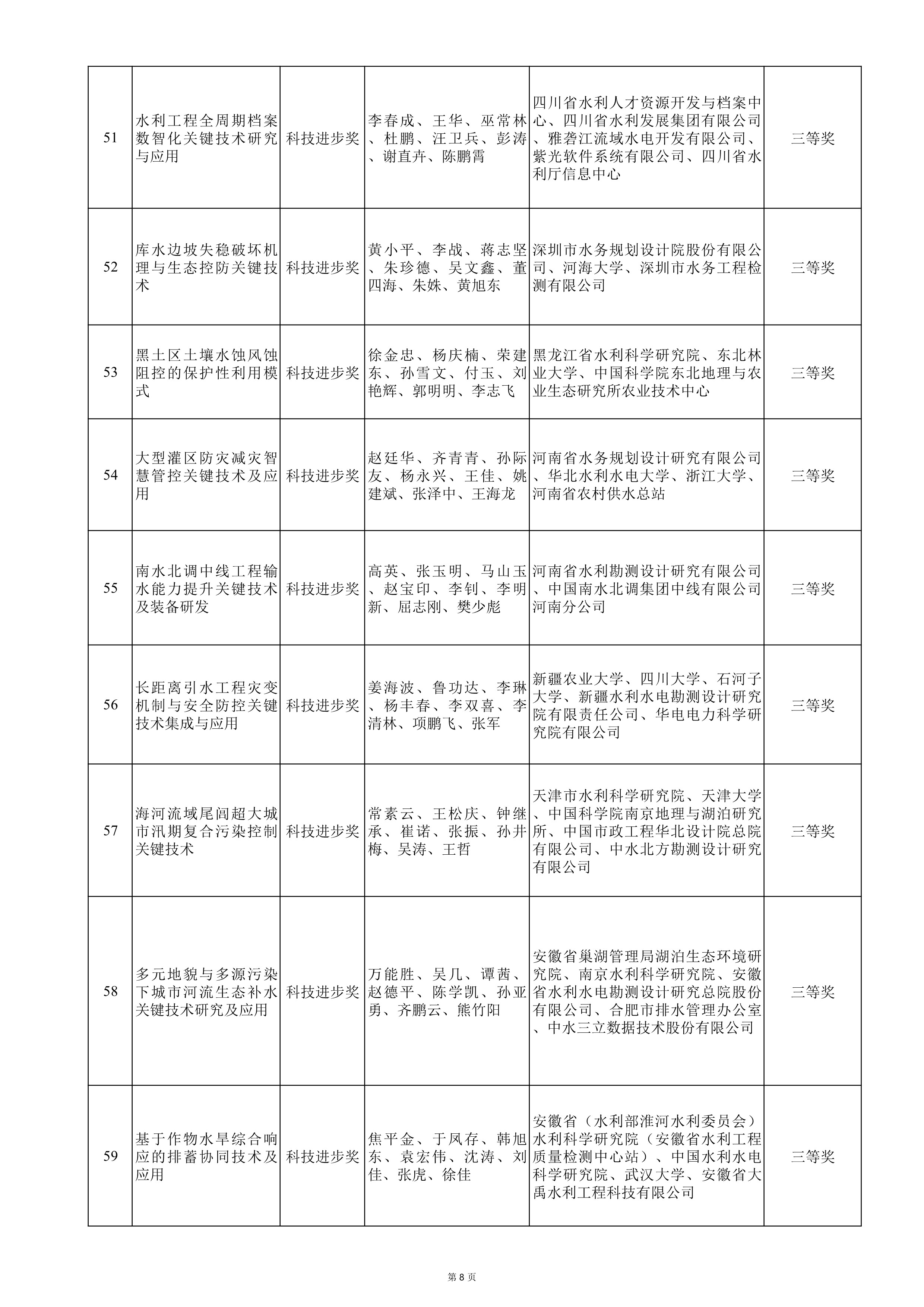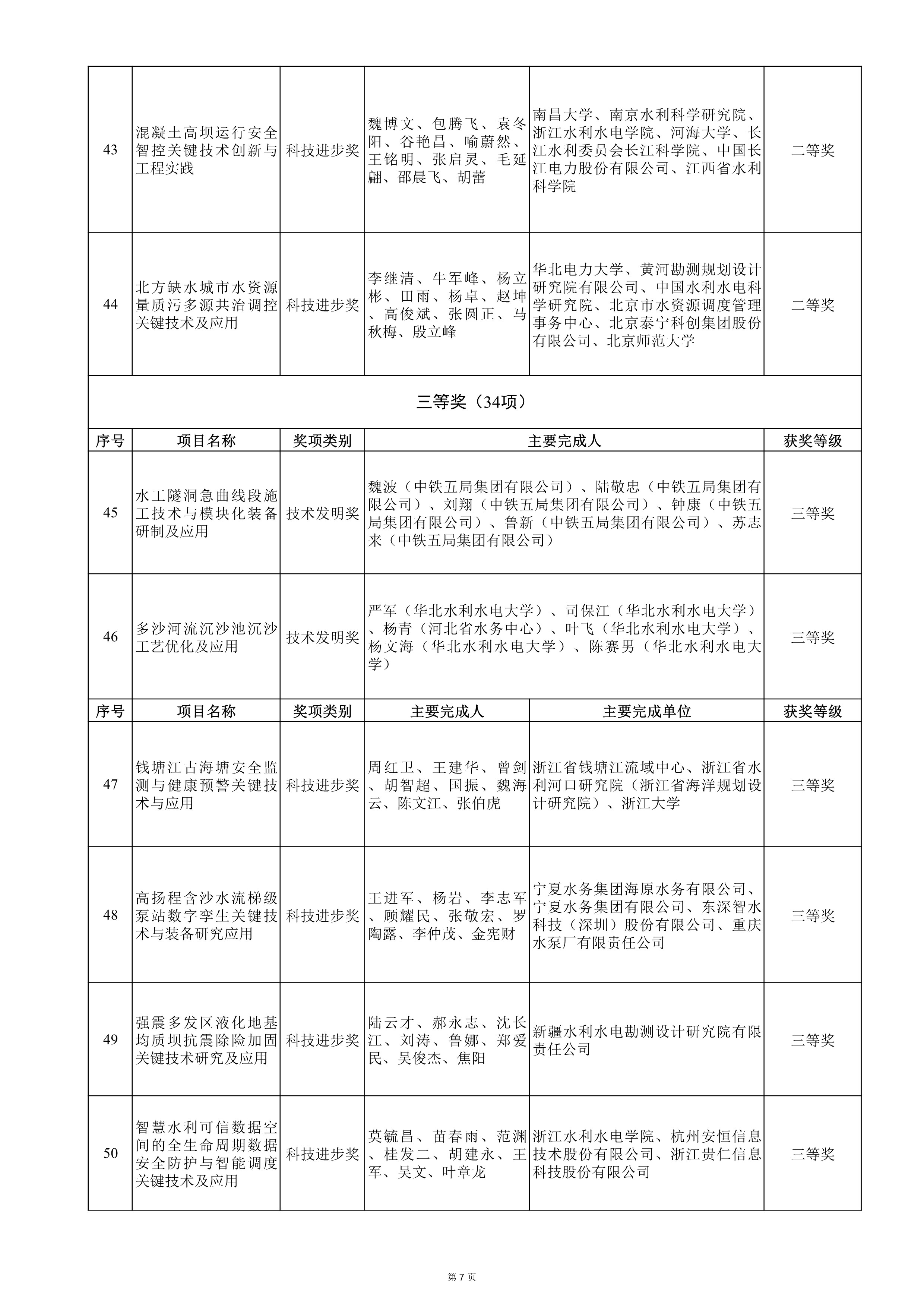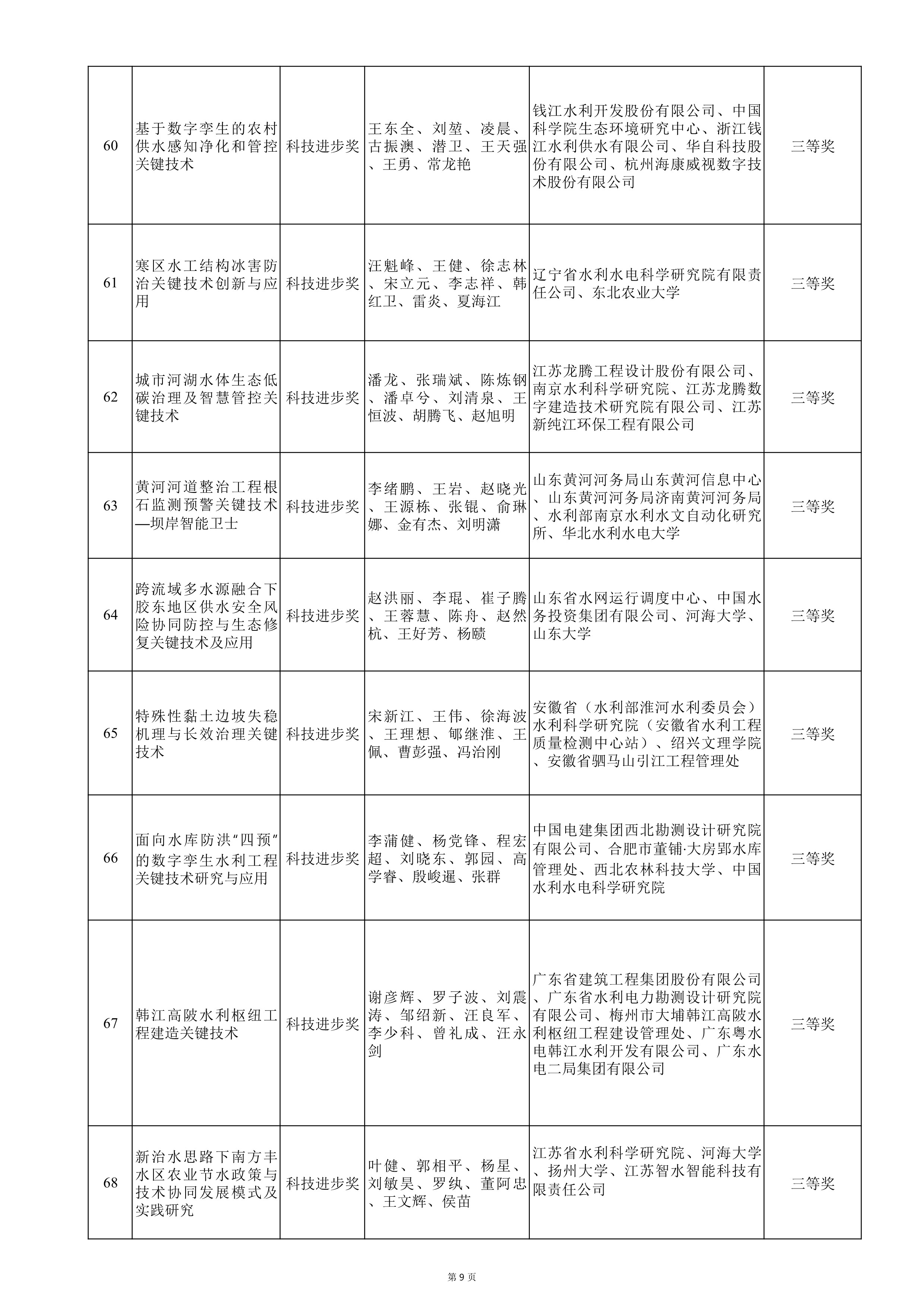 经大禹水利科学技术奖奖励委员会审定,“高危堰塞湖风险评估与快速处置关键技术”成果获技术发明奖特等奖;“超大城市深度节水关键技术与应用”等11项成果获科技进步奖一等奖;“特大流域水库群高维调度系统的智能解耦与精准优化方法”等4项成果获自然科学奖二等奖,“城乡一体化供水膜装备国产化与应用”等28项成果获科技进步奖二等奖;“水工隧洞急曲线段施工技术与模块化装备研制及应用”等2项成果获技术发明奖三等奖,“钱塘江古海塘安全监测与健康预警关键技术与应用”等32项成果获科技进步奖三等奖;“水利部信息中心国家关键信息基础设施(水利)网络安全技术创新团队”等2个团队获创新团队奖。现予公布。