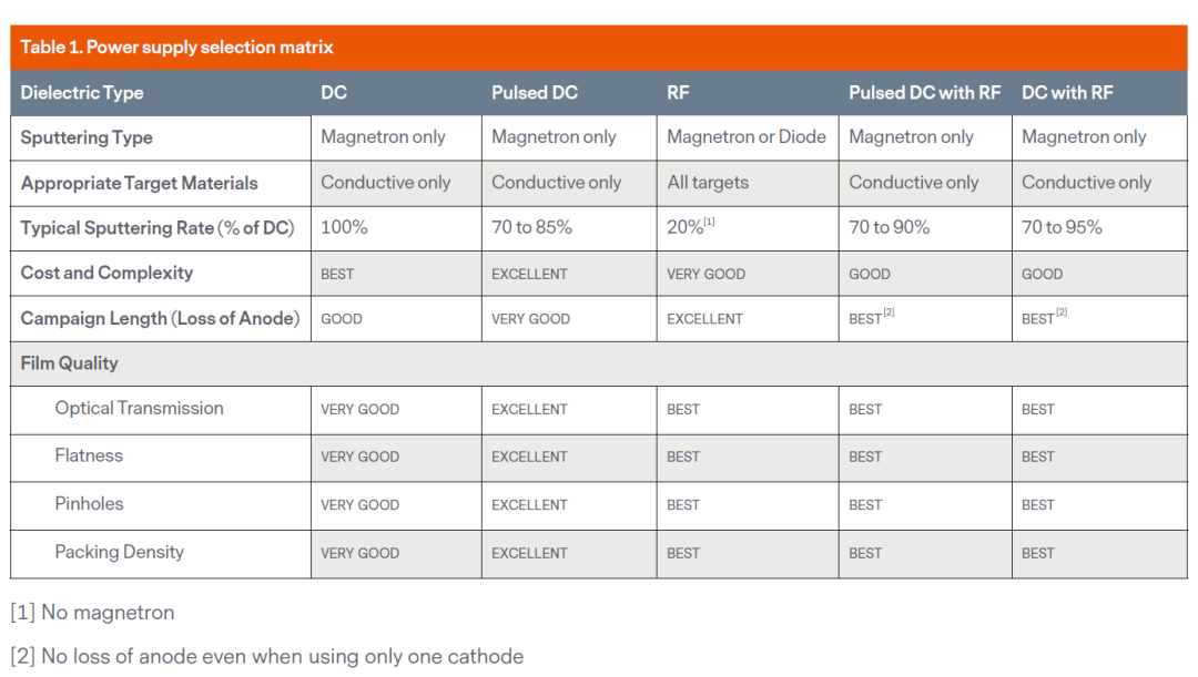 将射频与直流电结合,或者将射频与脉冲直流电结合,会在工艺设置中增加一定的复杂性和成本。当两种不同类型的电源同时工作时,电弧处理尤其具有挑战性。