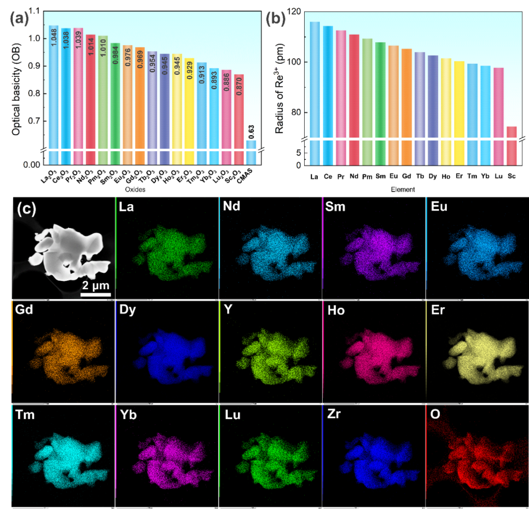 深入研究表明,两款新型材料的优异抗腐蚀性能均与光学碱度密切相关。重稀土氧化物的光学碱度与CMAS差异更小,化学反应活性更低,且不易形成磷灰石相;同时高熵效应带来的晶格畸变与迟滞扩散效应,进一步抑制了CMAS熔体的渗透与离子扩散。