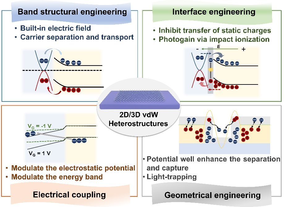 本文系统阐述了二维/三维范德华异质结在能带结构设计、界面优化、电场耦合、结构几何工程等维度的调控策略,全面梳理了从高性能光电探测到智能感知系统应用的最新进展。