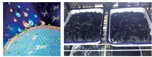 左图.富缺陷石墨烯稳定原 子级分散金属催化材料的 催化过程模拟示意图