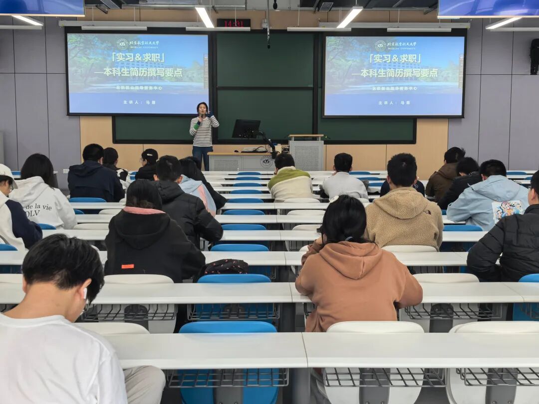 此次讲座邀请到学校就业指导服务中心的马雁老师解读就业政策、本科生简历撰写要点以及介绍学校的智慧就业平台,帮助同学们进行就业准备和职业规划。
