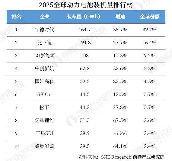 2025年,中国动力电池企业占据全球出货量的8成,市场份额遥遥领先。日韩企业不仅份额少,增速也远不及中国车企,甚至三星SDI的动力电池装车量还出现了下滑。