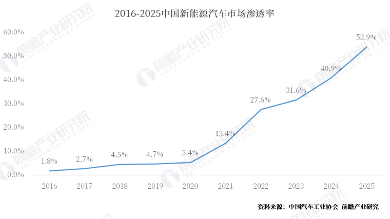 在本田难堪的业绩背后,还有一个更令人惊叹的数字:2025年,中国新能源汽车的国内零售渗透率正式突破50%,并且在2025年12月单月就将渗透率推向了56%的高峰。