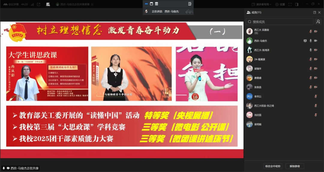 最后,西北农林科技大学植物保护学院团委副书记马俊杰,围绕植保学院团委学生会的组织运行机制、年度重点工作及未来规划进行介绍,重点说明了学院在发展文体活动、推动专业融合、深化社会实践等方面的创新举措。