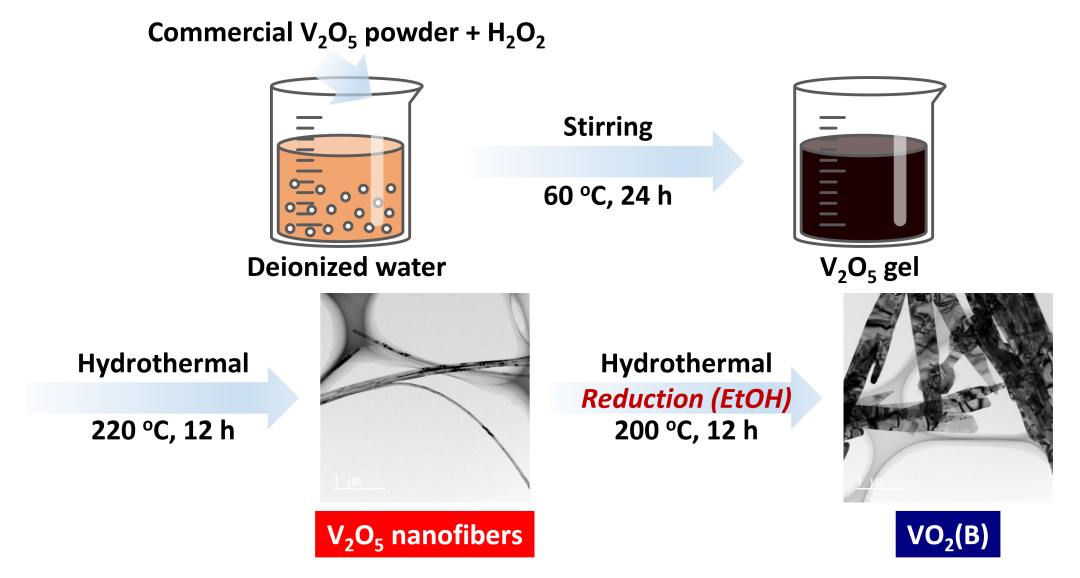 挥发性有机化合物(VOCs)广泛来源于工业生产、机动车尾气与日常生活,是典型的大气污染物,长期暴露会引发呼吸道损伤、头痛、肝损伤等健康风险,因此对其进行高灵敏度、高选择性、稳定可靠的实时监测已成为环境治理与公共安全领域的迫切需求。金属氧化物半导体(MOS)气体传感器因制备简单、成本低、集成度高,被广泛用于VOCs检测,但传统MOS材料通常需要在高温(200℃以上)条件下才能实现有效响应,不仅功耗高、易带来安全隐患,还会降低传感器的稳定性与选择性,难以满足低功耗、微型化、室温工作的现代应用要求。钒基氧化物(VOₓ)具有丰富可变的钒价态(V²⁺、V³⁺、V⁴⁺、V⁵⁺)与多样的晶体结构,在气敏、催化等领域展现出独特优势,其中一维V₂O₅纳米纤维因比表面积大、气体吸附位点多,被视为有潜力的气敏材料,但其仍存在工作温度高、选择性差、室温响应微弱等瓶颈。VO₂(B)作为一种亚稳相钒氧化物,具备室温气体响应的潜力,可显著降低传感器功耗,更适配微纳电子系统,但目前纯相VO₂(B)的可控制备难度大,易生成杂相,且其室温气敏机理、与传统V₂O₅材料的性能差异及内在作用机制尚不明确,严重限制了高性能钒基室温气体传感器的开发。