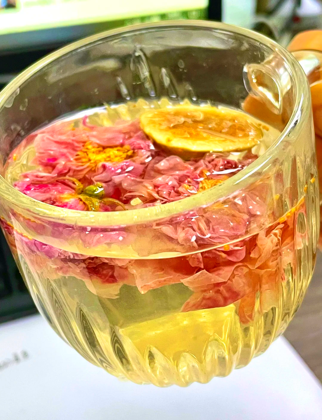 参与者在工作人员引导下从材料区自主选择花材与茶底,按照建议配比称量后装入茶包袋,封口并贴上专属标签。