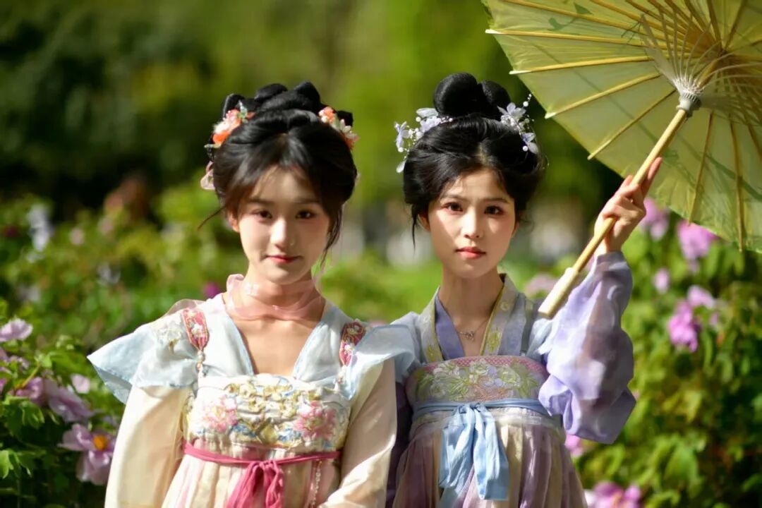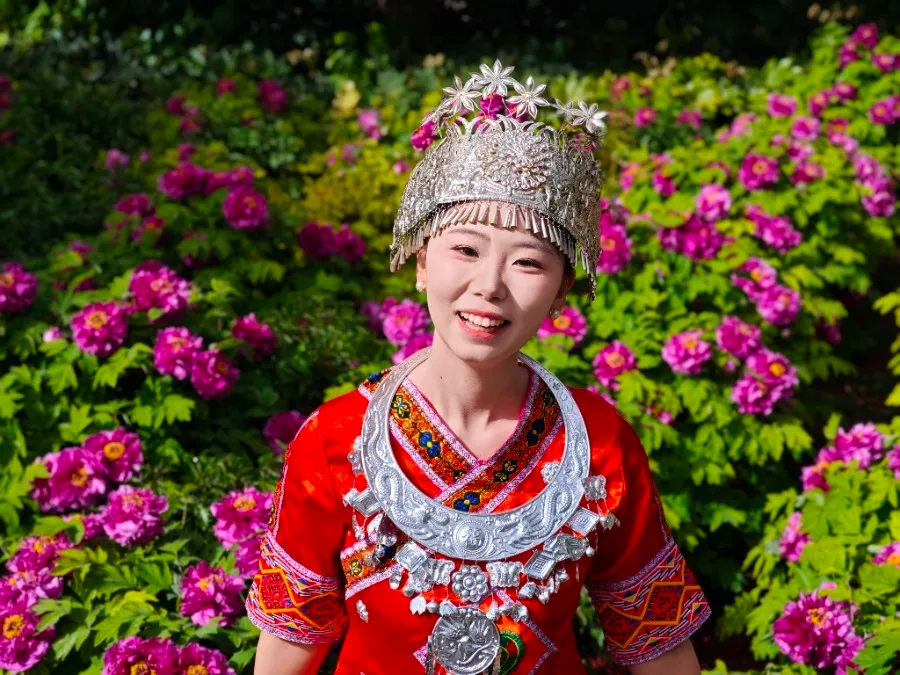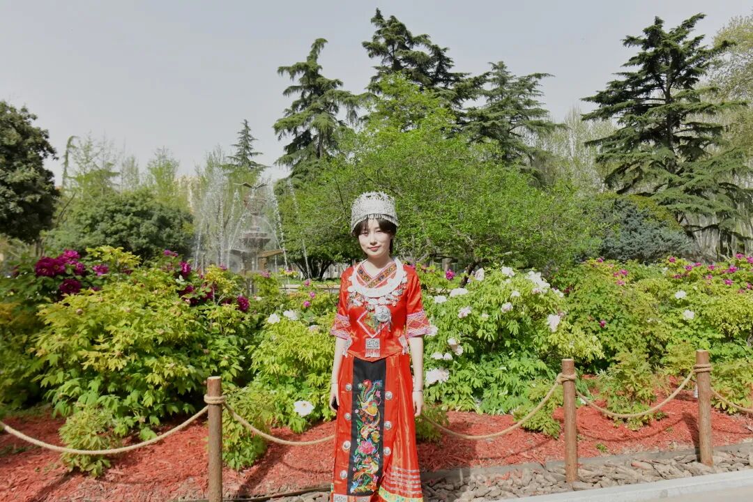 汉服、苗服模特漫步花海,衣袂飘飘、风姿绰约,与雍容牡丹相映成画。一步一景皆是东方美学,随手一拍就是大片,颜值与气质双双在线,尽显“绝代只西子,众芳惟牡丹”的绝代风华。