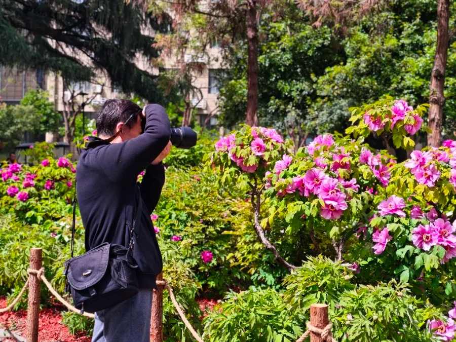 何人不爱牡丹花,占断城中好物华。自由打卡区人气爆棚,摄影爱好者与师生们纷纷举起相机,追着阳光拍牡丹、迎着春风拍笑脸。层层花瓣凝露、明媚笑颜生辉,光影交错间,每一帧都是西工大独有的春日限定,把美好瞬间永久收藏。